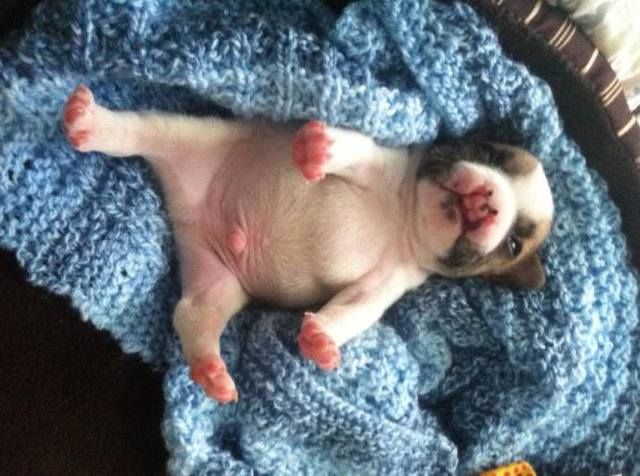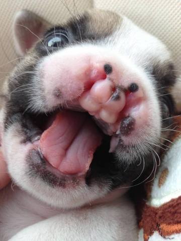 Этот щенок французского бульдога родился 2 февраля в Филадельфии. Вероятно во время беременности его матери что-то пошло не так и почти весь выводок щенят погиб при родах. Выжили лишь двое, но у обоих был страшный дефект под названием волчья пасть. Не зная, что ему делать с этими щенками, владелец собаки отнес обоих в специальный приют для французских бульдогов FBRN. Там вскоре второй щенок погиб от проблем с дыханием, но у оставшегося появился шанс не только на жизнь, но и на возможность операции по устранению волчьей пасти. Над ним взяла шефство 34-летняя Линдси, которая уже несколько лет работала в центре спасения бульдогов. Она дала симпатичному щенку кличку Лентил (Чечевица) и создала для него страничку на фейсбук, где описала его историю и то, что щенку сейчас самое главное немного подрасти и окрепнуть, а потом у него будет шанс на операцию, чтоб убрать волчью пасть. Каждый день она публикует на страничке фото малыша и сведения о том, как он кушает и как набирает вес. Вскоре у щенка появилось много поклонников, на данный момент их уже более 14 тысяч и немудрено. Даже со своим недугом он очень симпатичный и милый.