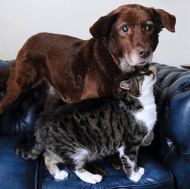 Бездомный кот, которого приютила пенсионерка из Уэльса, взял на себя заботу о другом питомце своей хозяйки - потерявшем зрение псе. Удивительный случай преданности и заботы животных друг о друге, окончательно развенчавший миф о вражде кошек и собак, произошел в семье 87-летней жительницы Северного Уэльса Джуди Годфри-Браун. Бродячий кот Поудитат, которого приютила пожилая женщина, взял на себя заботу о другом домашнем любимце в доме - ослепшем из-за катаракты восьмилетнем псе по кличке Терфел. - Я никогда не видела ничего подобного и всегда была уверена, что эти создания не переносят друг друга, но, как только у нас появился Поудитат, они стали просто неразлучны, - рассказала о трогательной дружбе пенсионерка. После того как ветеринары поставили Терфелу неутешительный диагноз, некогда активный пес совсем перестал выходить из дома и даже покидать пределы своего спального места. - Однажды вечером у входной двери я обнаружила бездомного кота. Он стоял и смотрел на меня, будто говорил: "Хочу жить у тебя дома, возьми меня к себе". Конечно, устоять я не смогла. Но самое удивительное, что наш новый жилец первым делом направился к дремавшей в своей корзине собаке, - вспоминает миссис Годфри-Браун. По словам пораженной хояйки, между двумя животными будто установилась невидимая связь. Первым делом Поудитат помог Терфелу выбраться из его убежища и затем вывел его в сад на первую за долгое время прогулку. - Он ласково, но настойчиво теребит пса лапами и подталкивает головой, так они и ходят - моя старая собачка и приблудный кот, - поделилась Джуди. Бывший социальный работник Годфри-Браун призналась, что ухаживать за обоими животными для нее становится все сложнее, даже несмотря на то что четвероногий поводырь берет на себя львиную долю хлопот о собаке-инвалиде. Поэтому в ближайшее время друзей отправят жить в приют для животных в деревне Лангаффо в Северном Уэльсе.