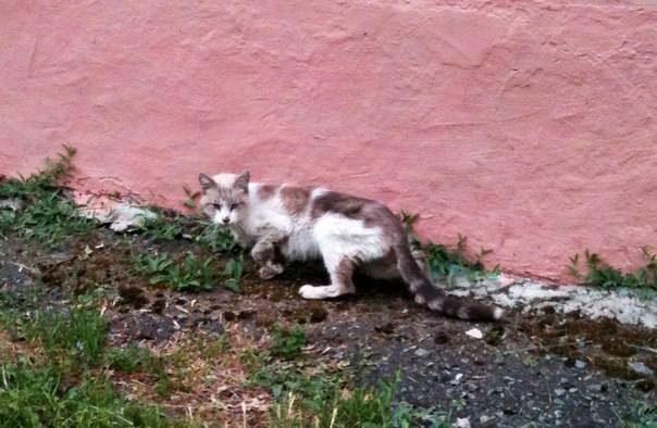 Этот кот с необычным окрасом обитает во дворе детского сада. Если начальство увидит- ему не жить. Он ооочень худой.. Ходит пошатываясь..Всего лишь еда,вода и теплое место помогут ему окрепнуть! Помогите красавцу! Ведь только представьте каким он может стать благодаря простым манипуляциям!