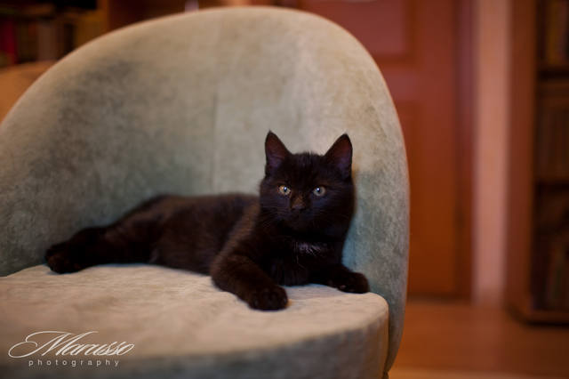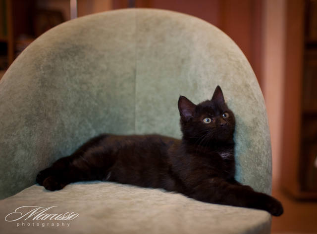 Наверное чувствует ответственность.Зовут его Сема. По заключению ветеринара, ему всего около 4- х месяцев от роду, но его активности, напористости, сообразительности и хорошему аппетиту позавидуют более взрослые особи..А уж обаяния у него с избытком. При всей ненависти к котам Куша сдался в его плен и во всем ему потакает .С лотком нет никаких проблем - ходит в древесный наполнитель.