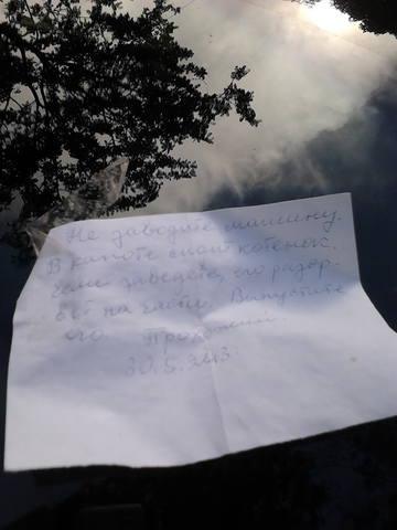 Девочки я сейчас не могу звонить, может кто-то сделает это? Вообще, когда мы первый раз там проходили, то какой-то парень уже звонил хозяину, там вроде сказали, что в три часа приедет выпустит. Но в три часа мы шли и записка на стекле висела и котенок под капотом орал.