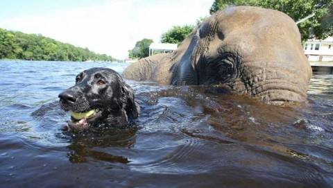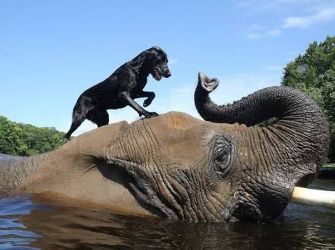 Удивительная дружба слона и лабрадора