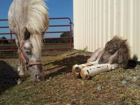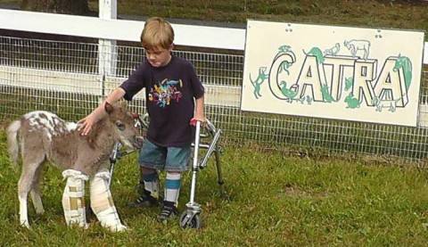 Общее несчастье объединило двухмесячного жеребенка по имени Джадд и маленького жителя штата Пенсильвания Тайлера Криббса, который передвигается на ходунках или с помощью мамы. Трогательная дружба является частью проекта помощи лошадям, которые заняты в детской ипотерапии. Как известно, общение с лошадьми очень полезно для детей с нарушениями физического и умственного развития. Руководство некоммерческой Ассоциации лечебной верховой езды (CARPA) в городе Грантвиль, Пенсильвания, решило отдать долги этим животным в лице недавно родившегося Джадда. У жеребенка недостаточно развиты передние ноги, так что он ходит с помощью экзопротезов. Организация обеспечивает ему лечение, а также познакомила малыша с Тайлером, который понимает его, как никто другой. Кроме того, CARPA собирает деньги на терапию для жеребенка, чтобы в будущем он мог в полную силу помогать детям. По словам Хизер Криббс, матери Тайлера, мальчик и жеребенок стали лучшими друзьями. «Для Тайлера очень важно общение с больным животным, оно помогает ему переживать собственную боль. Мальчик видит, что жеребенок справляется с проблемой, и старается не отставать от друга», - рассказывает она.