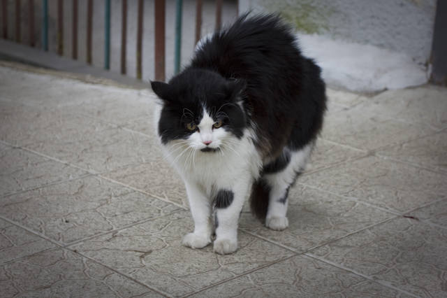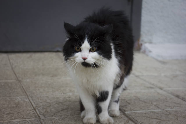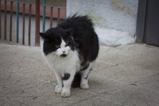 слушайте..я прям в шоке... видно этот котяра очень хочет домой... идем мы с прогулки с малым и собакой..а тут это чудо выходит из почты.....и от собаки никуда не побежало...так чуть надыбился... хотя сколько я тут хожу так близко за последнее время он мне не попадался...