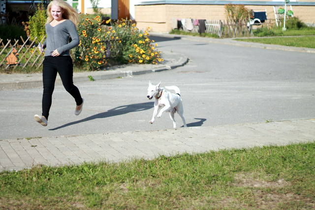 обстригла Асе шерсть на теле, так где был клей.. и на шее.. сняла ошейник.. выгуляла её на поле, накормила вкусной кашей, которую Катя для неё сварила( пол литра было съедено )В клетке она сидеть отказывается, сегодня облаяла мол ч-ка, который пришел покататься на лошадях.. Лезет под ноги, заваливается в конюшню.. Начинают на неё жаловацца ![]() Завтра с Денисом буИм её мыть.. Тока нужно купить гипоаллергенный шампунь и достать башое полотенце.. Помоем, достригу остатки и испробуем супер-клевый фотик Вити, сделаем ей фотосет на травке))) главное чтоб погода не подвела..собака реально клевая, её полюбили все дети и взрослые)) просто она привыкла к манежу и считает его своей территорией.. надо пробовать уже её пристраивать, пока есть время.. Она супер ласковая, послушная, веселая, терпеливая и классная-классная!! Словами передать все невозможно! С этой собакой стоит пообщаться и все сразу будет ясно Добавлено через 13 минут помогите мне кто-ниб написать текст, который можно будет в газету дать и на сайты.. у меня совсем пусто в голове(( нужно краткую историю и потом описать то, какая она классная.. кстати, мы с дэном сегодня заметили что она косит на один бок, это либо машина сбила, либо кто-то оч сильно ударил.. |