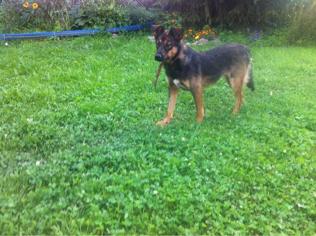 Ну вот Мишка уже 4 дня с нами. Хорошо подружилась с Мартыхой. Играет с мячиком, пока сама. В дом заходит боязлово, но заходит, силком не тяну, не пытаюсь загнать, не хочу пугать. Тусит все время рядомс нами, еду берет из рук. Носом в руку тыкается, но гладится не дается, громких звуков пугается. Процесс идет своим ходом, я не давлю,не прессую. С интересом наблюдает за всем,особенно за тем, как мы купаемся)))