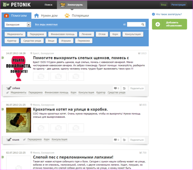 | Ресурсы для рекламы наших животных | Laponka-svetik | Интернет | 42 | 08.05.2015 13:02 |