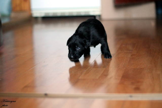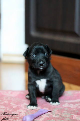 Нам сегодня 3 недели) Посему получили подарок - первую игрушку, резиновую косточку. Начали прорезаться зубы, поэтому подарок оценили, погрызли пару минут. Уже пробуют рычать, пока получается весьма смешно. Кушают хорошо, весят уже по 1,3 кг каждый.