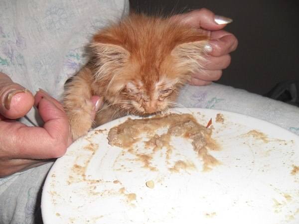 Это маленькая Буська. Глаза были сплошное красное месиво (на фото уже намного лучше, чем когда я ее увидела впервые, это мы уже идем на поправку). Постоянные сопли, корки на носу, глаза текли.