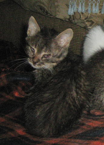 Ну, а это мы сейчас. После болезни осталась пленка на глазах, но видит она хорошо. Нос сопливит время от времени, но все это не важно. Главное, что у нас теперь супер-ласковая кошка и оооочень умная, а еще бесстрашная, ни боится ни других котов, ни собак.