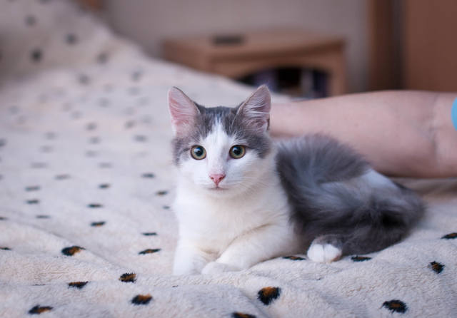 Котику Мэйсону 4 месяца. Котик немного пугливый: так и смотрит на вас с человечьим выражением лица, мол, вы меня не обидите? Но так он относится только к незнакомым людям, своей же временной хозяйке Мэйсон любит "петь" песенки :)