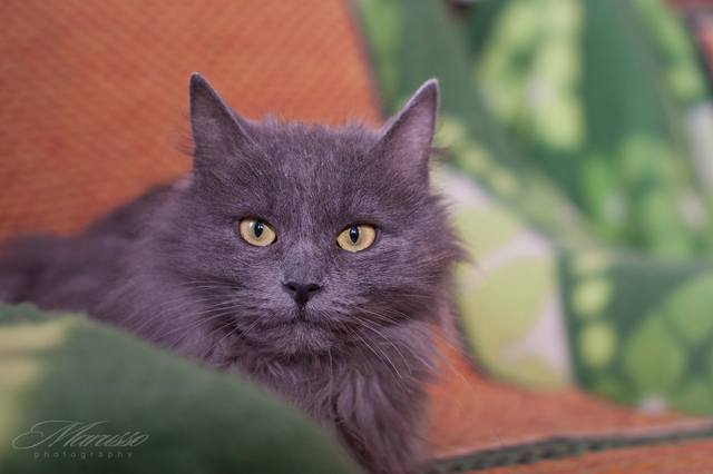 Какие необычные сочетания цветов предлагает нам природа! Вот и в Ксюше она выгодно оттенила оранжево-желтые глаза кошечки мышиного цвета шерсткой. Ксюше 2 года, она в меру игривая, приучена к лотку и стерилизована.