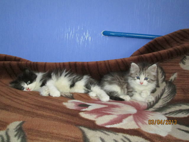 Два маленьких пушистика очень ждут добрых и ответственных людей, что бы подарить им свою любовь! Черно-белый – мальчишка, серо-белая – девчонка. Обратите свое внимание на эти пушистые комочки.