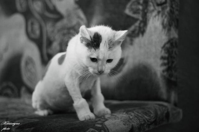 Эта трехмесячная кошечка была найдена сидящей под дождем возле магазина. Она бежала навстречу каждому человеку, проявляющему к ней интерес...но все люди торопились в свои дома, совсем не замечая малютку(( Но в тот вечер ей повезло -- ее все же заметили и принесли в тепло.