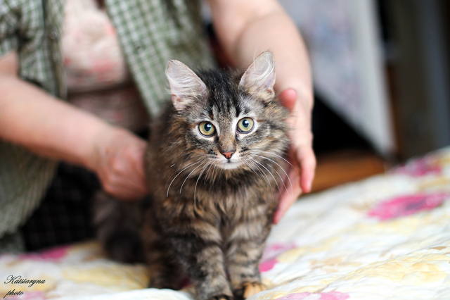 Красивая и нежная кошечка в поисках дома. У нее необычная пушистая шубка, каких цветов там только нет, и серый, и белый, и рыжие пятнышки..Ну а этот милый носик окончательно заставляет в нее влюбиться) Возраст 5 месяцев,к лотку приучена, окажем помощь в стерилизации при желании будущего хозяина. Приезжайте в гости, Мирабель уже готова Вас очаровать.